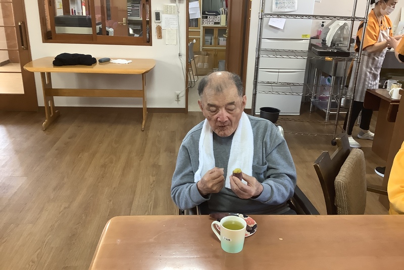 温かいふかし芋を食べて頂きました!!