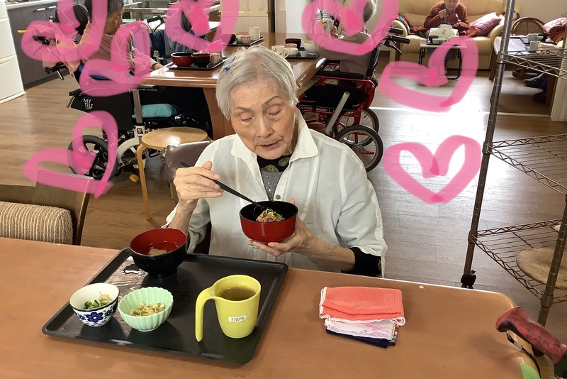 甘酒にあられをオヤツに食べて頂きました♪